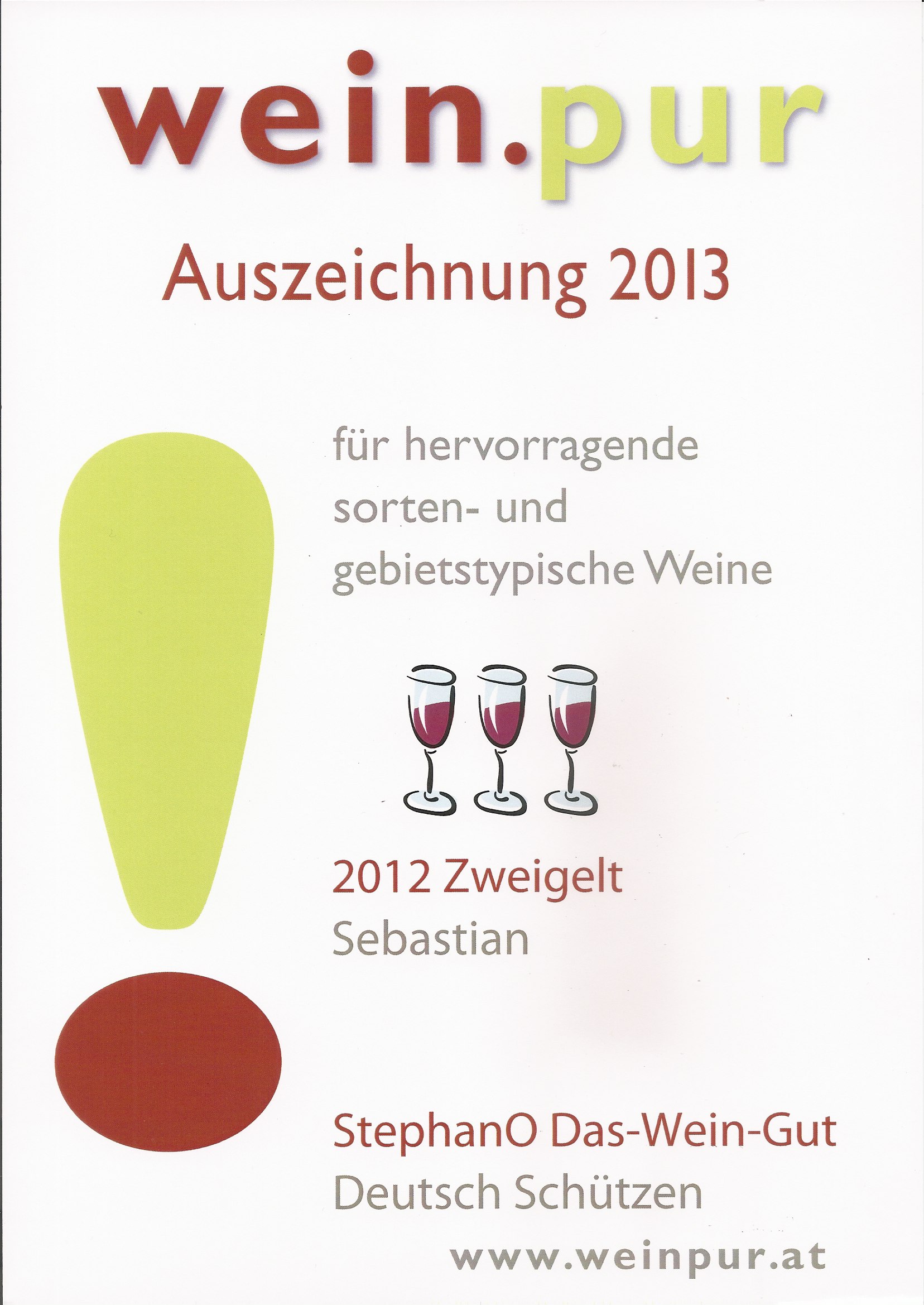 In der aktuellen Ausgabe 03/2013 von wein.pur wurden wieder einmal die besten Sommerweine des letzten Jahrgangs gekürt. Unser Sebastian - Zweigelt 2012 wurde mit 3(!) Gläsern für AUSGEZEICHNET bewertet!