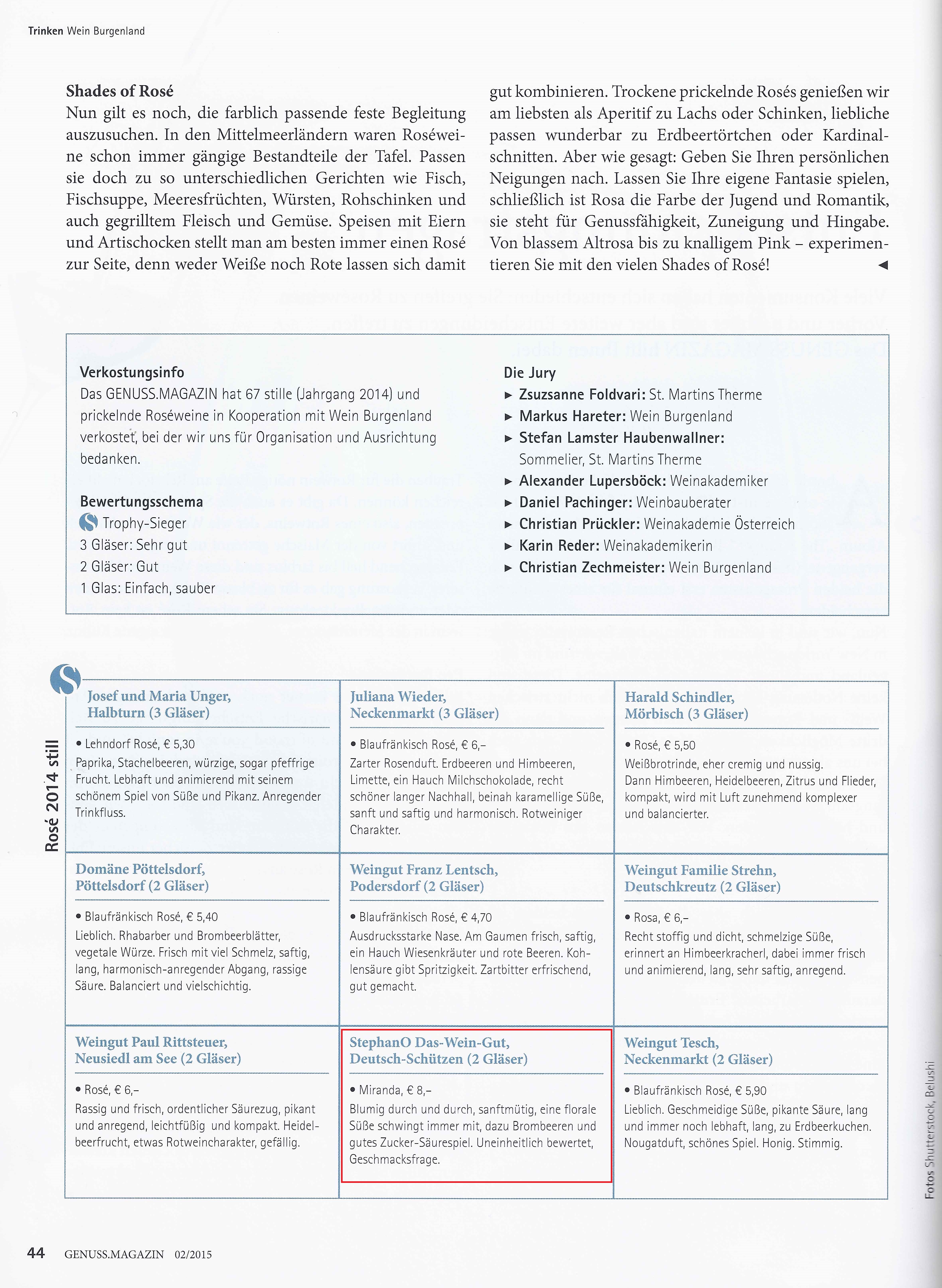 Die Wein Burgenland hat gemeinsam mit wein.pur Genuss.Magazin den aktuellen Jahrgang 2014 von Burgenländischen Rosé Weinen verkostet. Die Ergebnisse wurden in der eben druckfirsch erschienen neuen Ausgabe 02/2015 des Genuss.Magazins veröffentlicht.