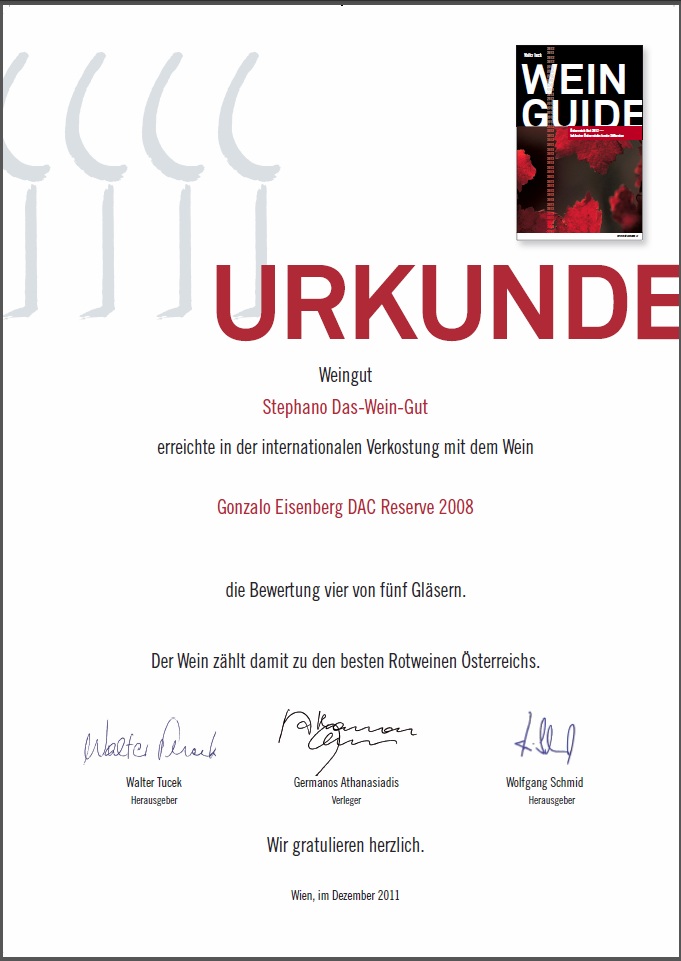 In der neuen Ausgabe des Weinguides von wirt+winzer wurde unser gonzalo - Eisenberg DAC Reserve mit vier von fünf Gläsern ausgezeichnet.